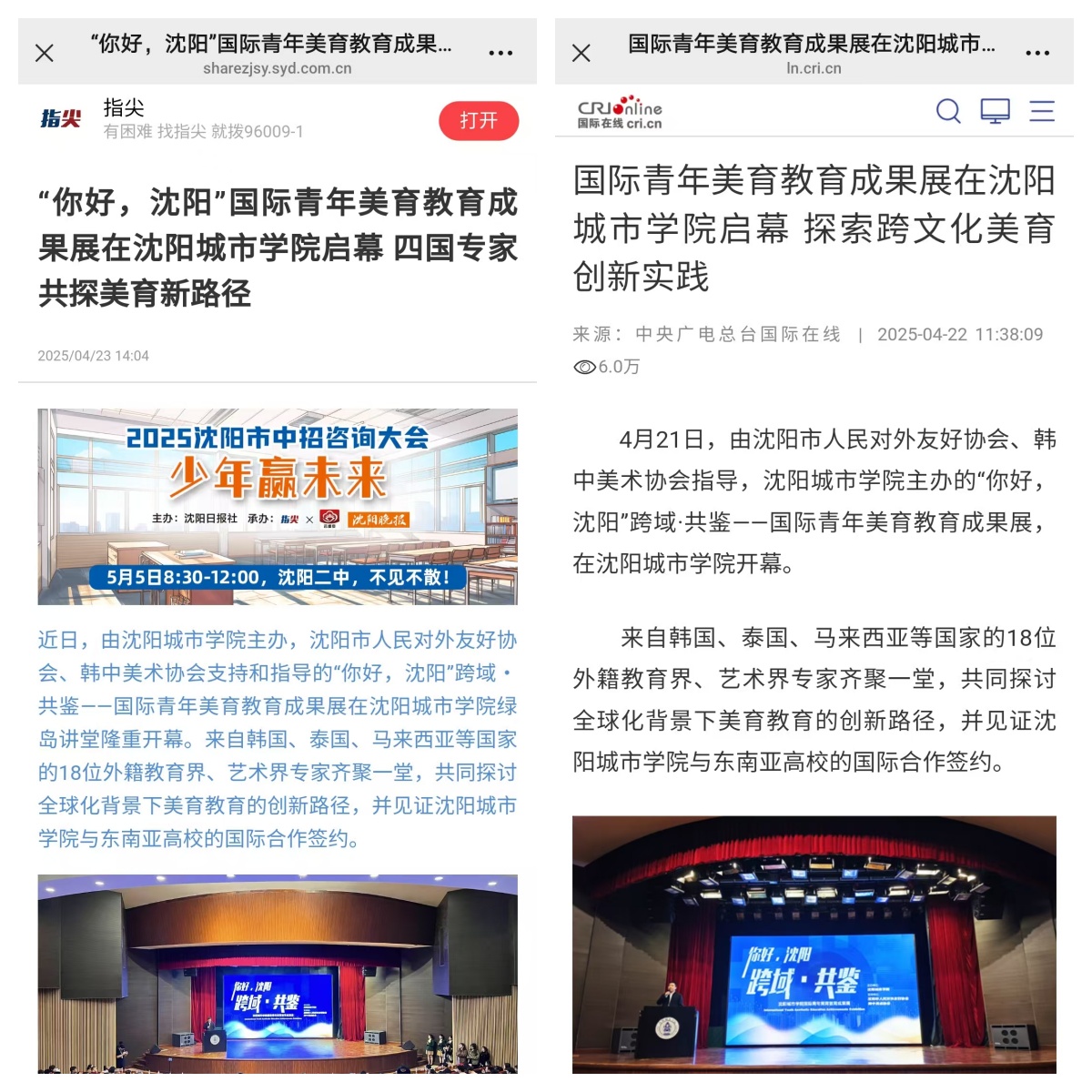 【中国青年报客户端、中国日报、中央广电总台国际在线、沈阳晚报、中国交通广播】等10余家主流媒体关注沈阳城市学院国际青年美育教育成果展