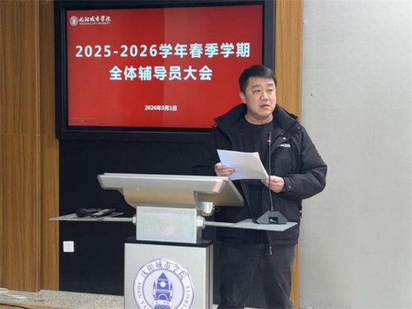 3月1日下午,沈阳城市学院2025-2026学年春季学期全体辅导员大会在南楼会议室召开。本次大会以明晰工作目标、查摆问题短板、凝聚育人合力为核心,全面部署新学期学生工作重点任务,进一步统一思想、压实责任,为推动学校学生工作高质量发展谋篇布局。相关校领导、全体学生工作负责人参加大会。